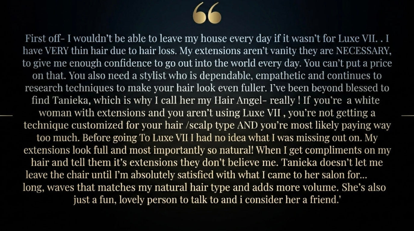 For many of our clients, extensions aren't about vanity, they're about feeling like themselves again. At Luxe VII, we create customized solutions that restore confidence, enhance natural beauty and make everyday life feel effortless.